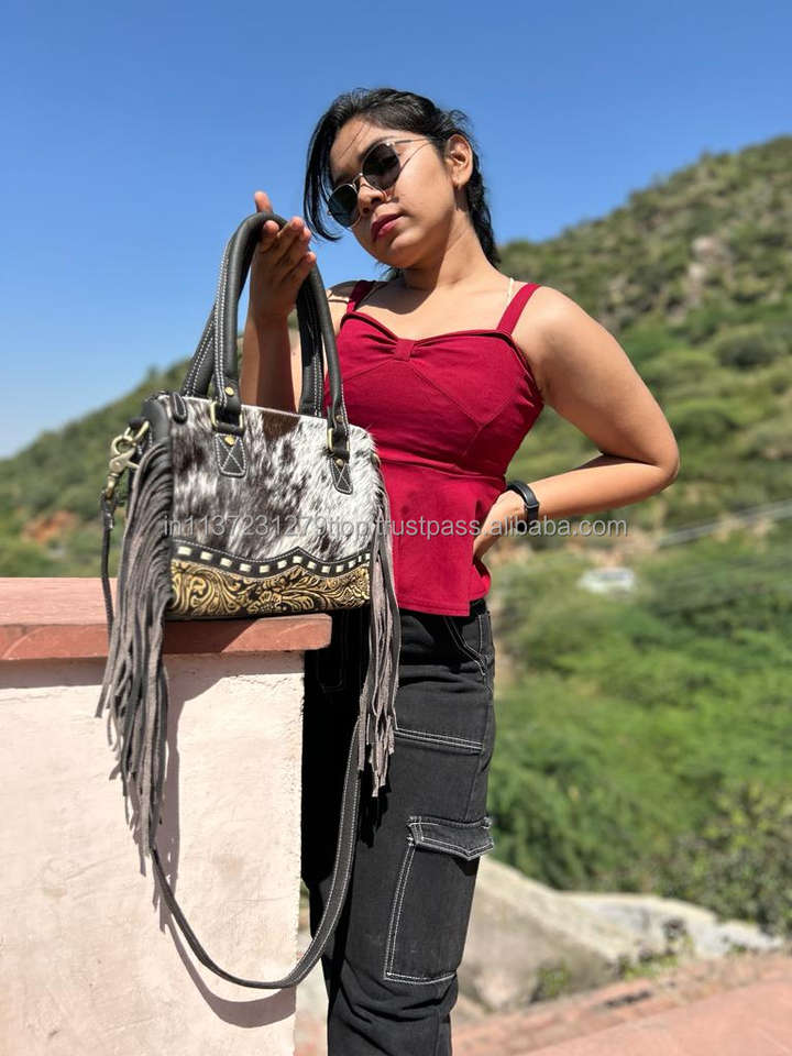 Western Cowhide Leather Hand Tooled Carving Leather Fringe Tote Bag Stylish Purse Leather Bags for Women's Multi Use