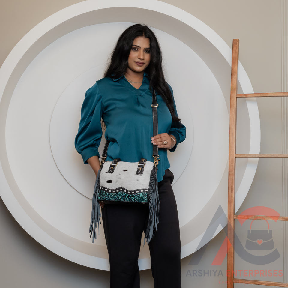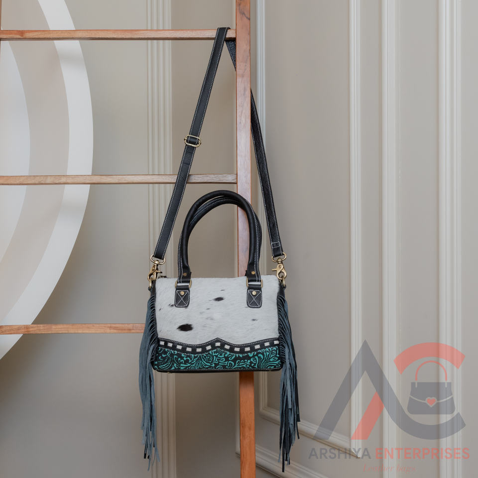 Western Cowhide Leather Hand Tooled Carving Leather Fringe Tote Bag Stylish Purse Leather Bags for Women's Multi Use