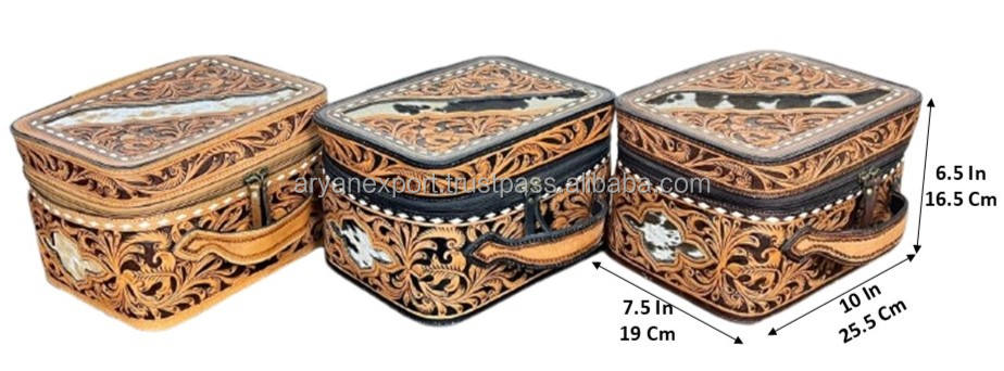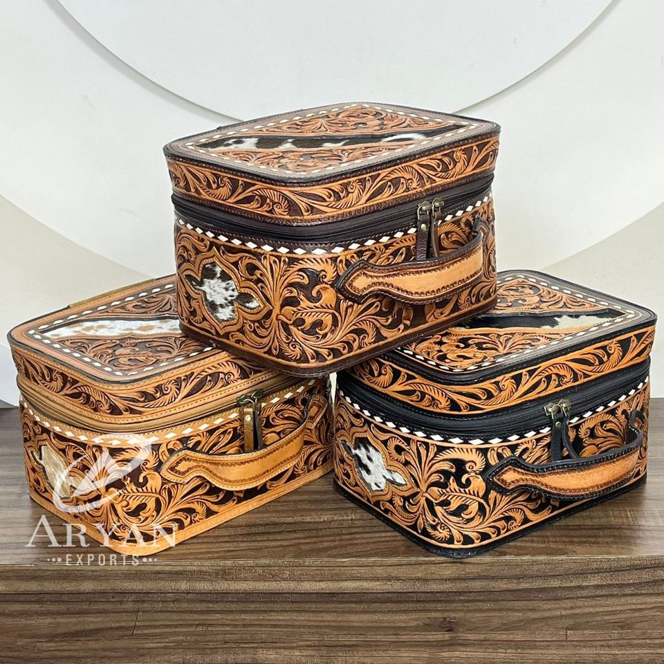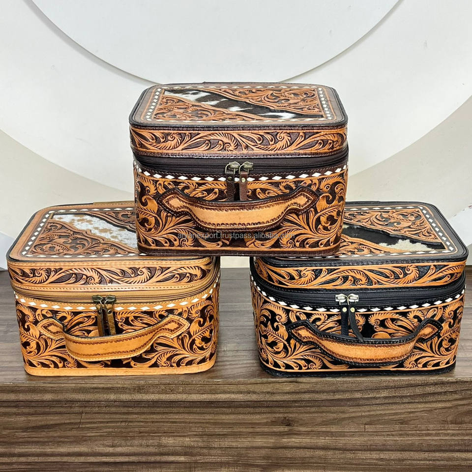 Product name:Hand Tooled Cowhide Leather Women's Makeup Bag
