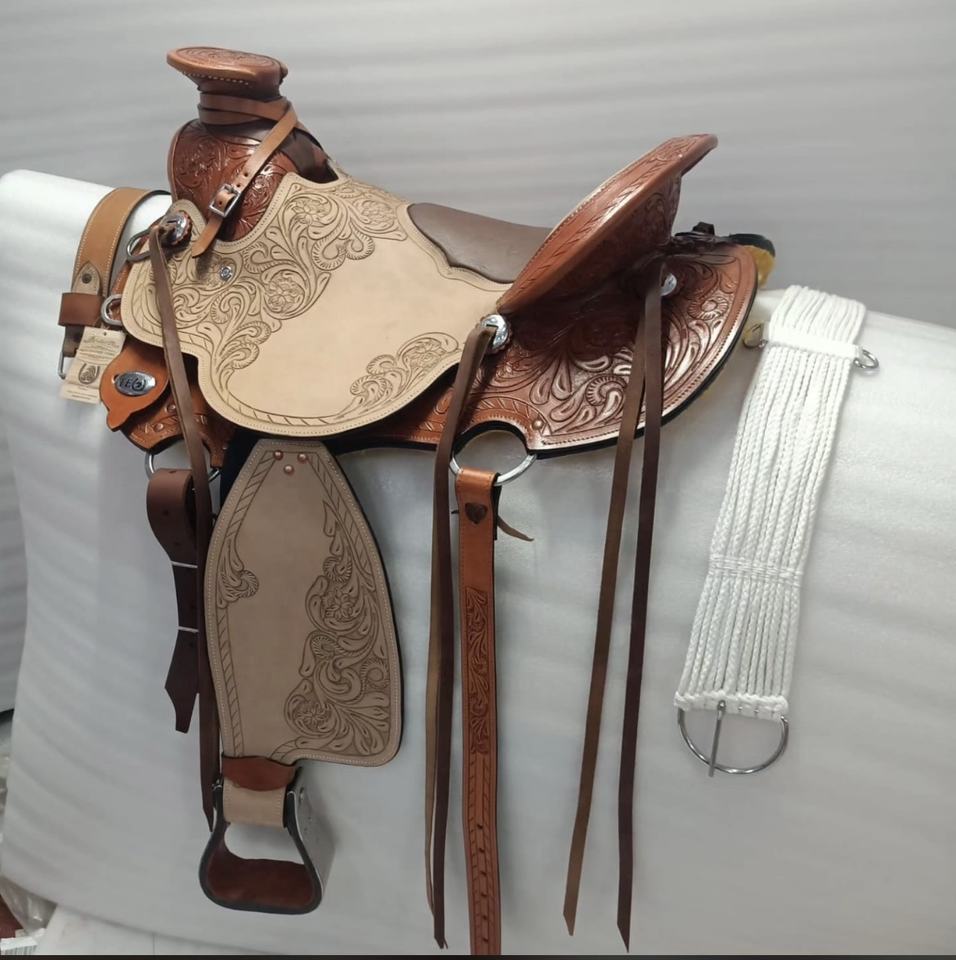 Western Dressage Saddle Dark Brown Hand Carved Leather Roper Ranch 14\" to 18\"