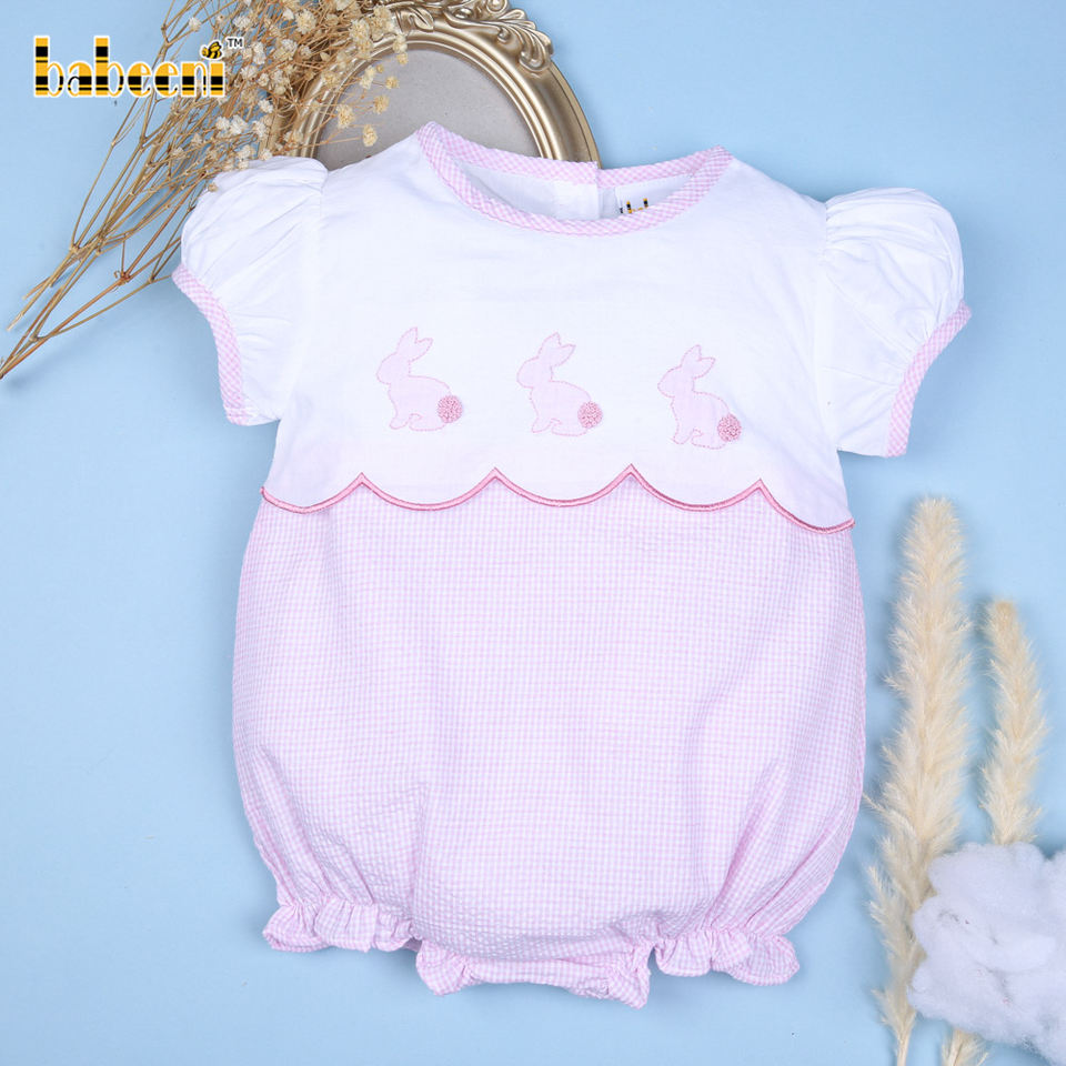 Western Easter Bunny Shadow Embroidery Baby Girl Bubble Romper Floral Spring ODM 0-6 Months 12-18 Months Snap Button 100%
