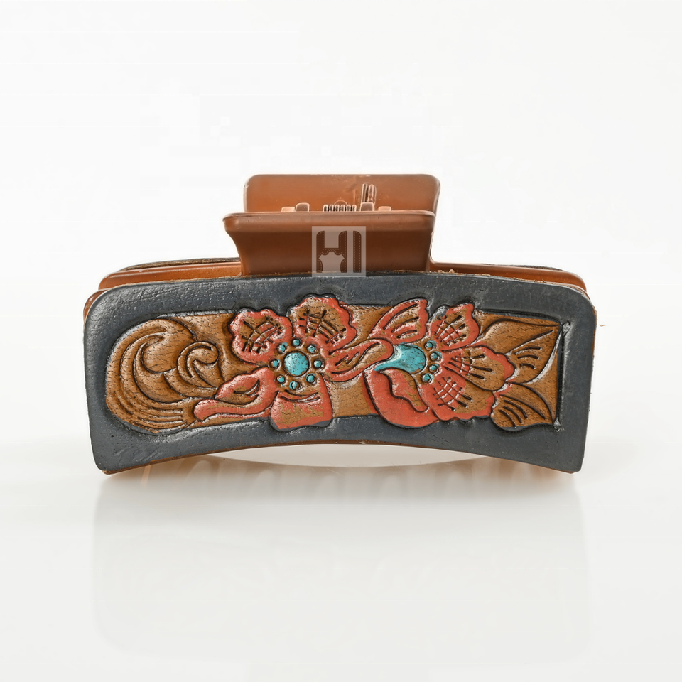 Cowhide Tooled Leather Matte Hair Claw