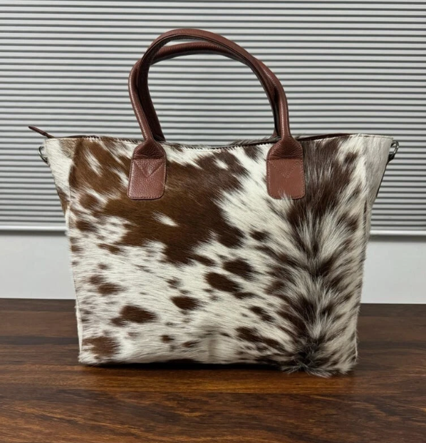 Western Fashionable Lady's Genuine Cowhide Leather Tote Bag Shoulder Purse with Natural Hide Hair-On Women's Bucket Bag
