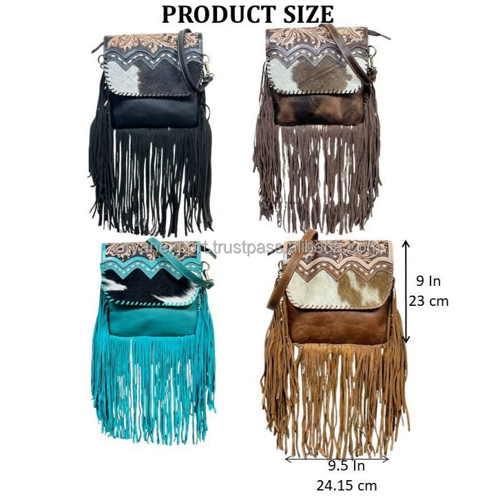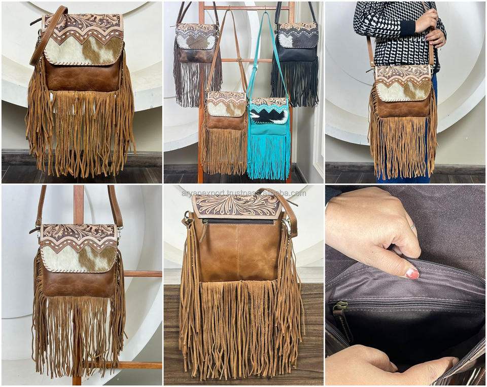 Product name:Hand Tooled Cowhide Leather Fringe Crossbody Bag