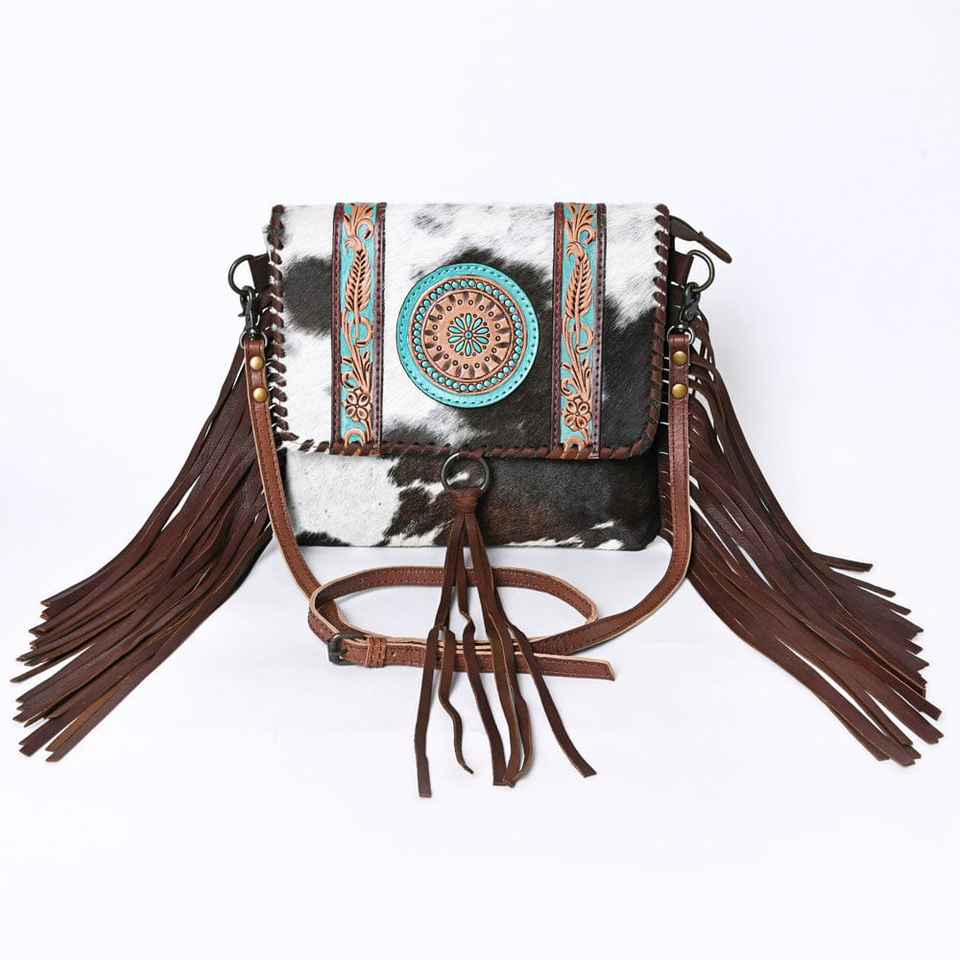 Premium Rodeo Style Women's Vintage Leather Tassel Crossbody Bag with Zipper Closure 1-1.9L Capacity Best Price for Girls