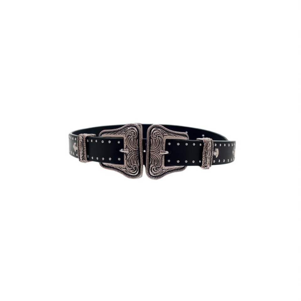 Western Genuine Leather Belt 3cm 100cm Double Prong Buckle Silver Cow Hide Casual Men Women Fashion Accessory