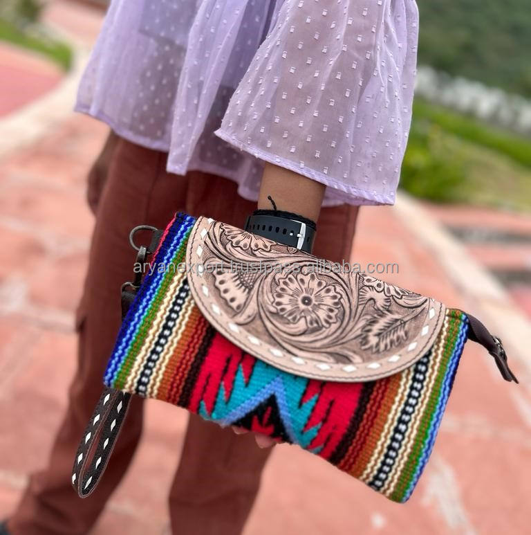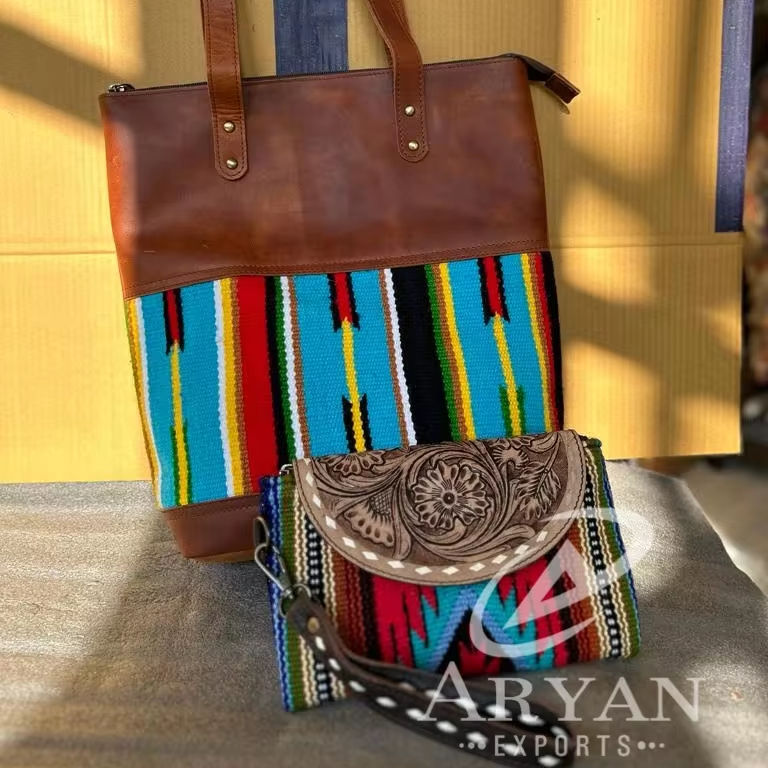 Western Genuine Leather Saddle Blanket Tote Bags for Women Stylish Hand-Tooled Leather Saddle Blanket Wristlet Wallet Combo Sets