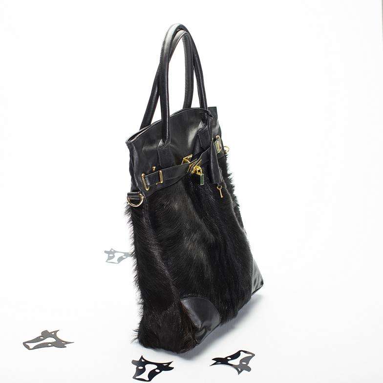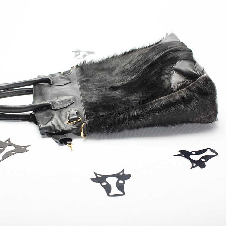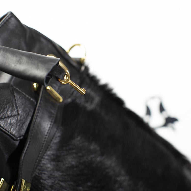 Western Goat hide Leather Tote Bag Lock And Key Gold Clasps Trendy New Style Inner Pockets Black Genuine Leather Casual Hand Bag