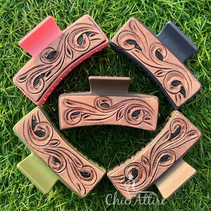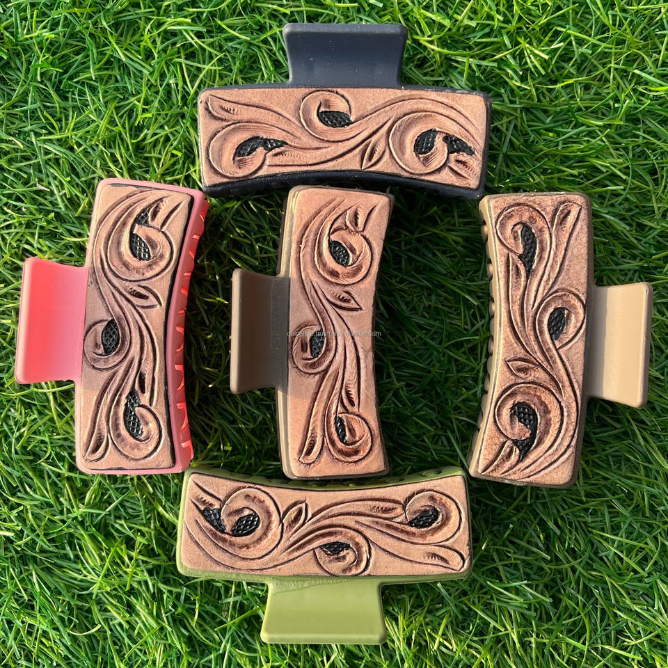 Product name:Hand Tooled Leather Women Hair Claw Clip