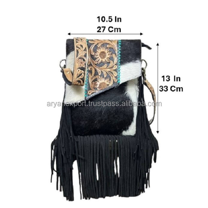 New Western Hand Tooled Leather Fringe Crossbody Bag for Women Genuine Hair On Cowhide Leather Concealed Carry Shoulder Handbag
