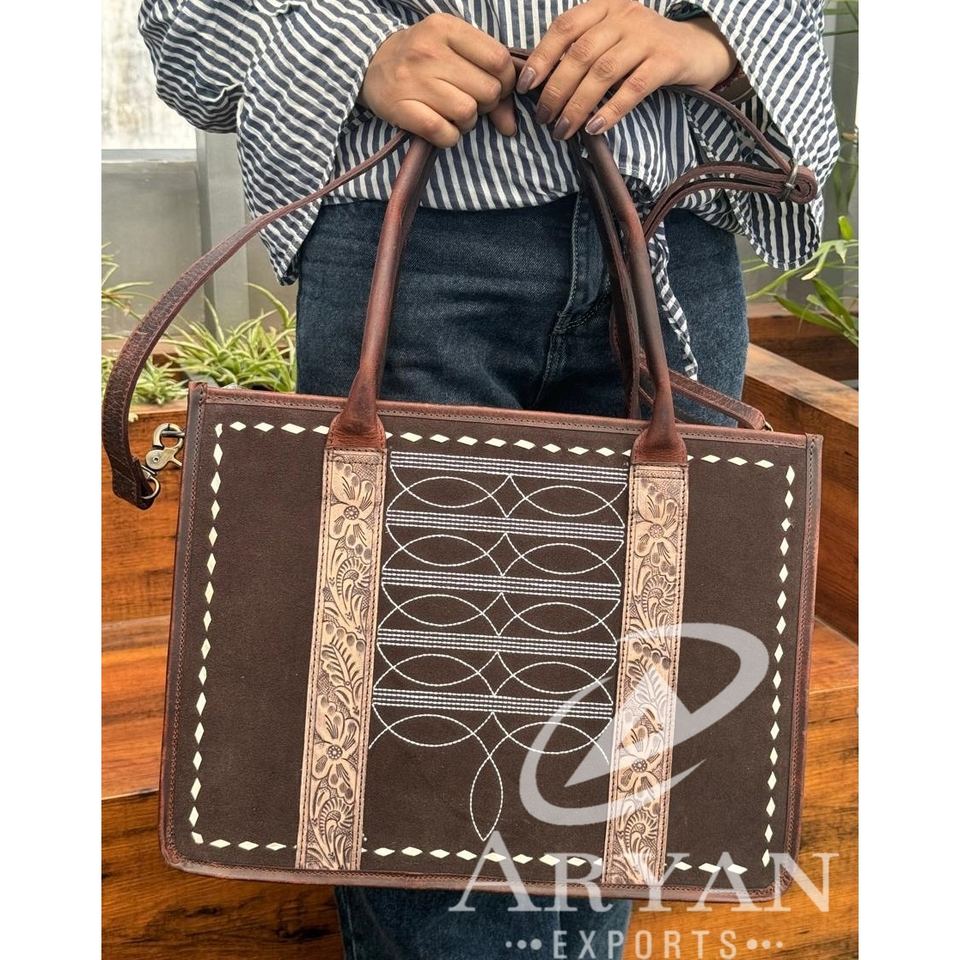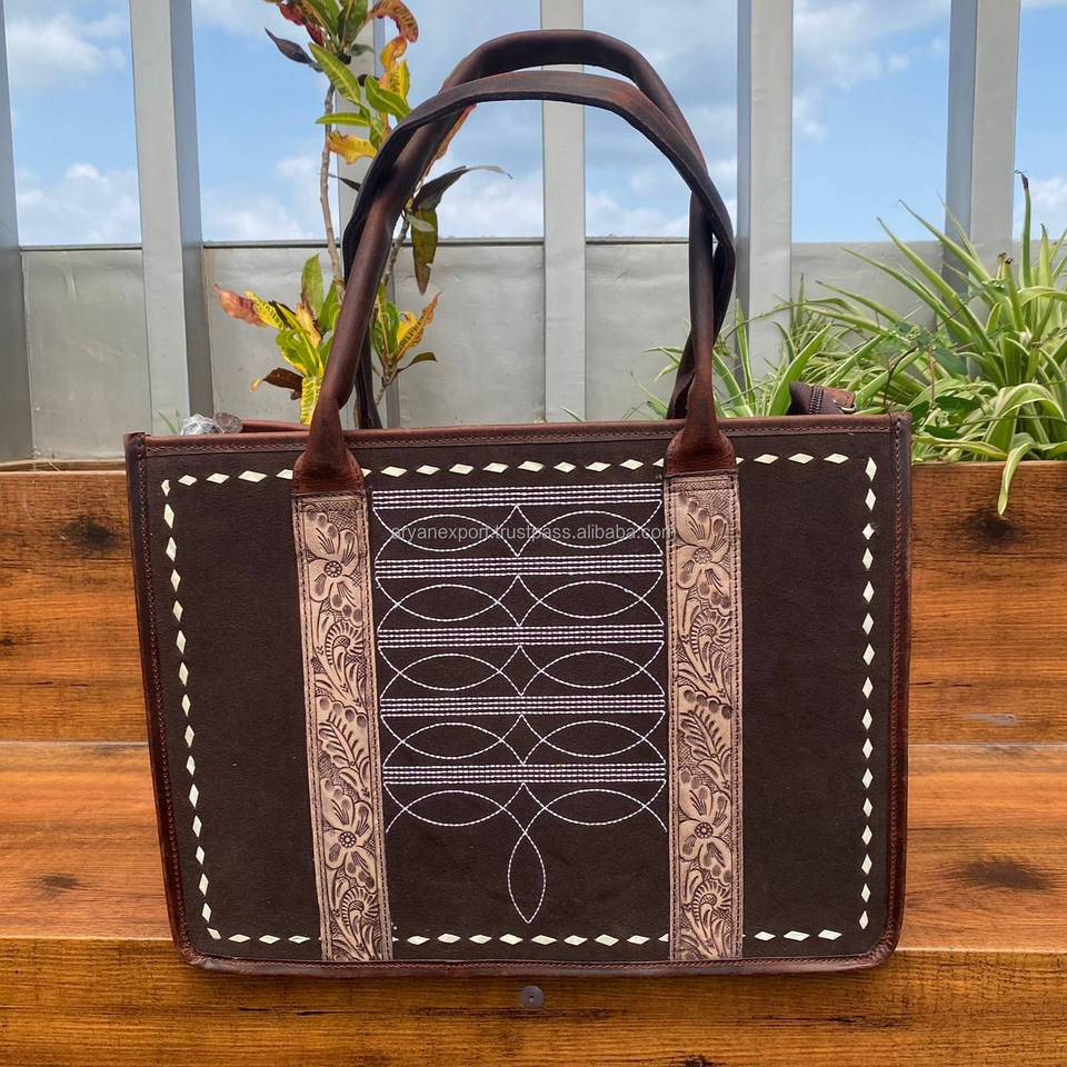 Product Name:Hand Tooled Suede Leather Tote Bag