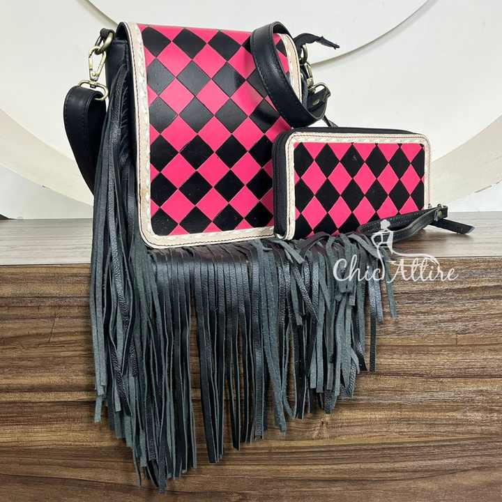 Product name:Hand Tooled Checkered Leather 2-piece Combo Set