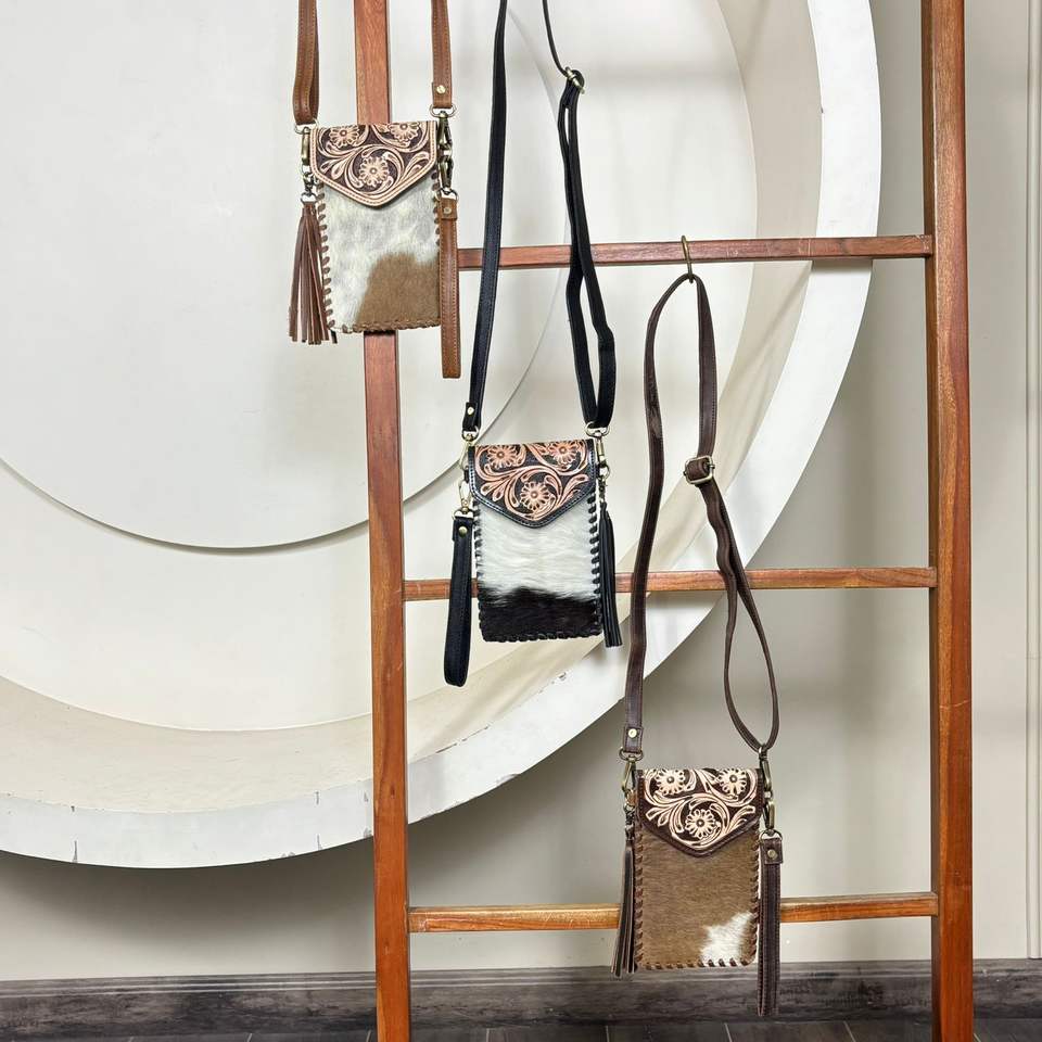 Hand Tooled Fashionable Crossbody Mobile Bag