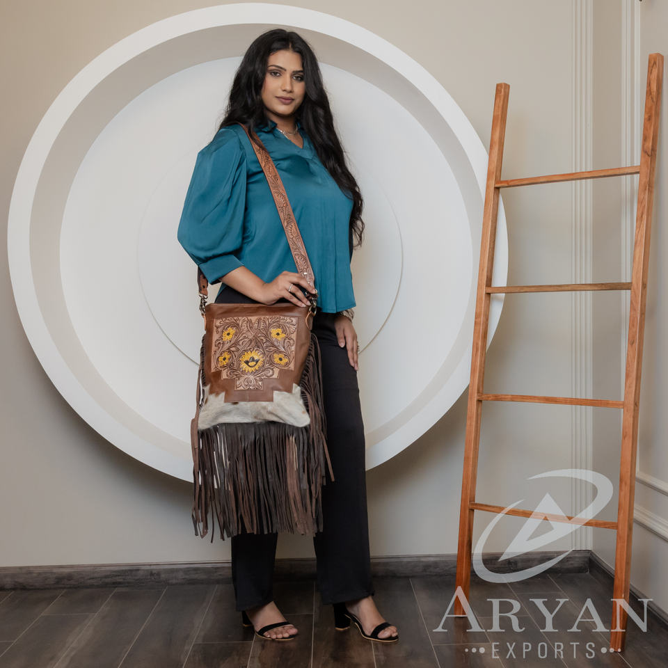 New Hand Tooled Leather Large Capacity Crossbody Bag for Women High Quality Luxury Designer Genuine Cowhide Leather Shoulder Bag