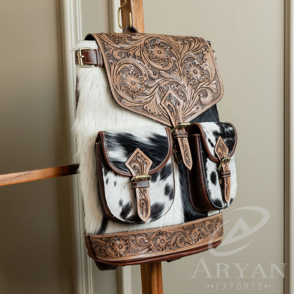 Product Name:Hand Tooled Hair On Cowhide Leather Women Backpack