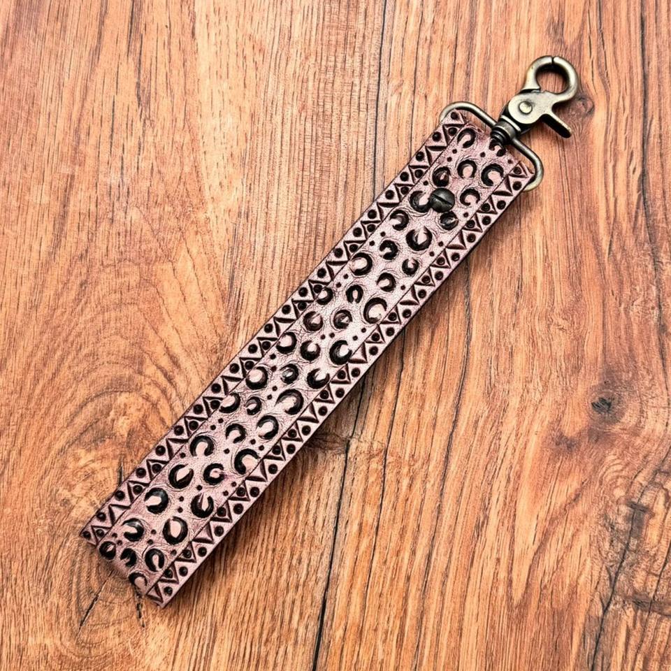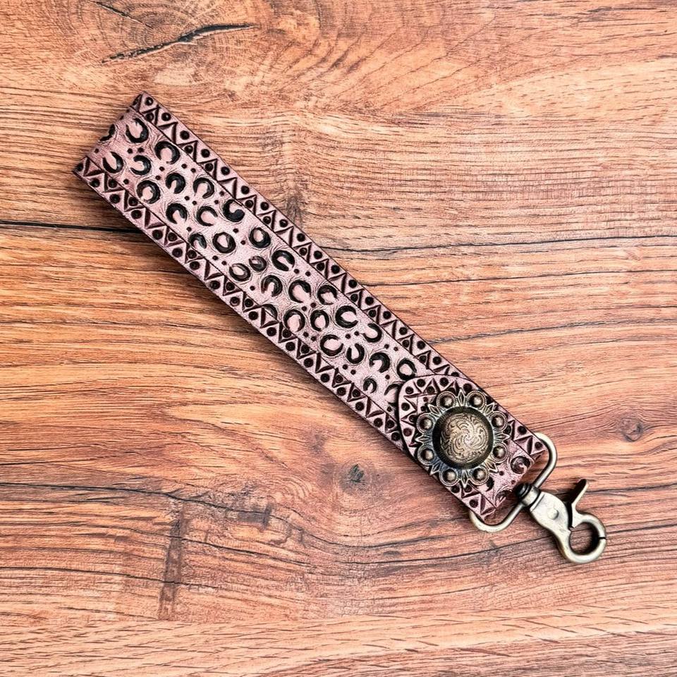 Western Hand Tooled Leather Concho Floral Wristlet Strap Lanyard Keychain Custom Genuine Cowhide Leather Key Clip Cowgirl Gifts