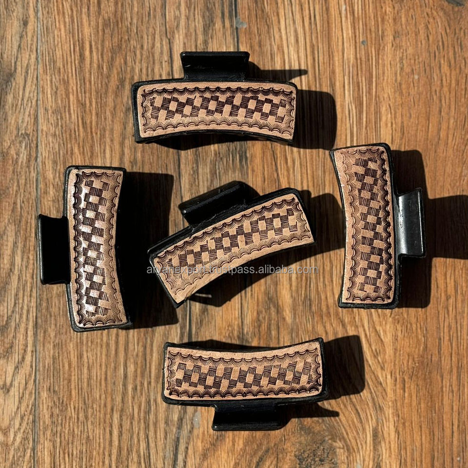 Product name:Hand Tooeld Leather Women Hair Claw Clip
