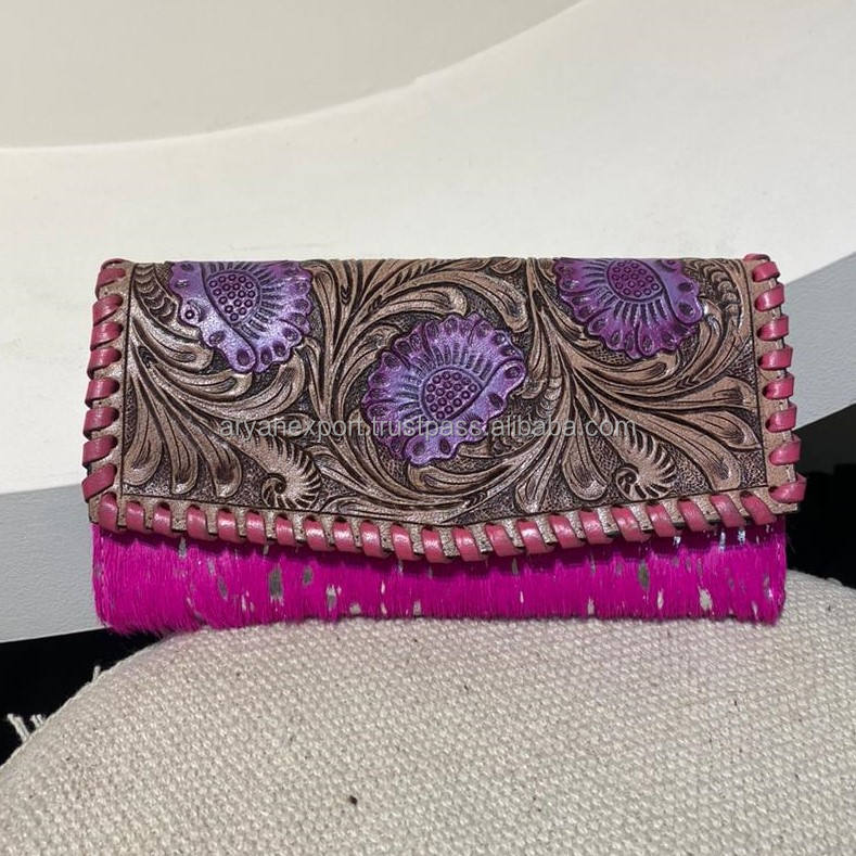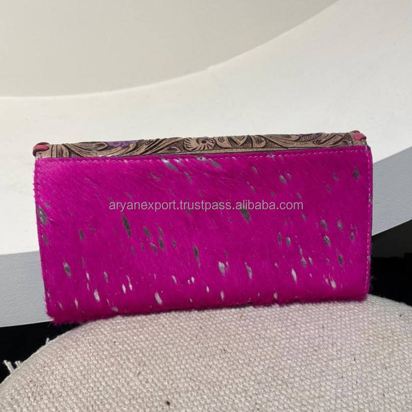 Western Hand Tooled Leather Wallet Hair on Metallic Genuine Leather Purse Premium High Quality Western Card Holder Luxury Wallet