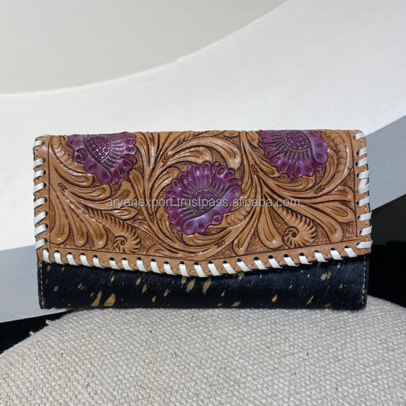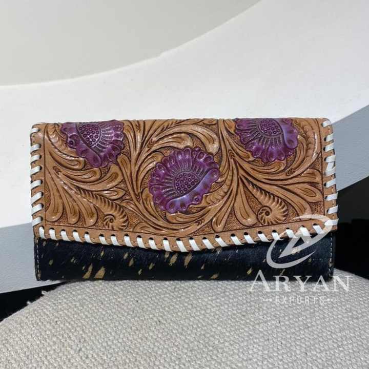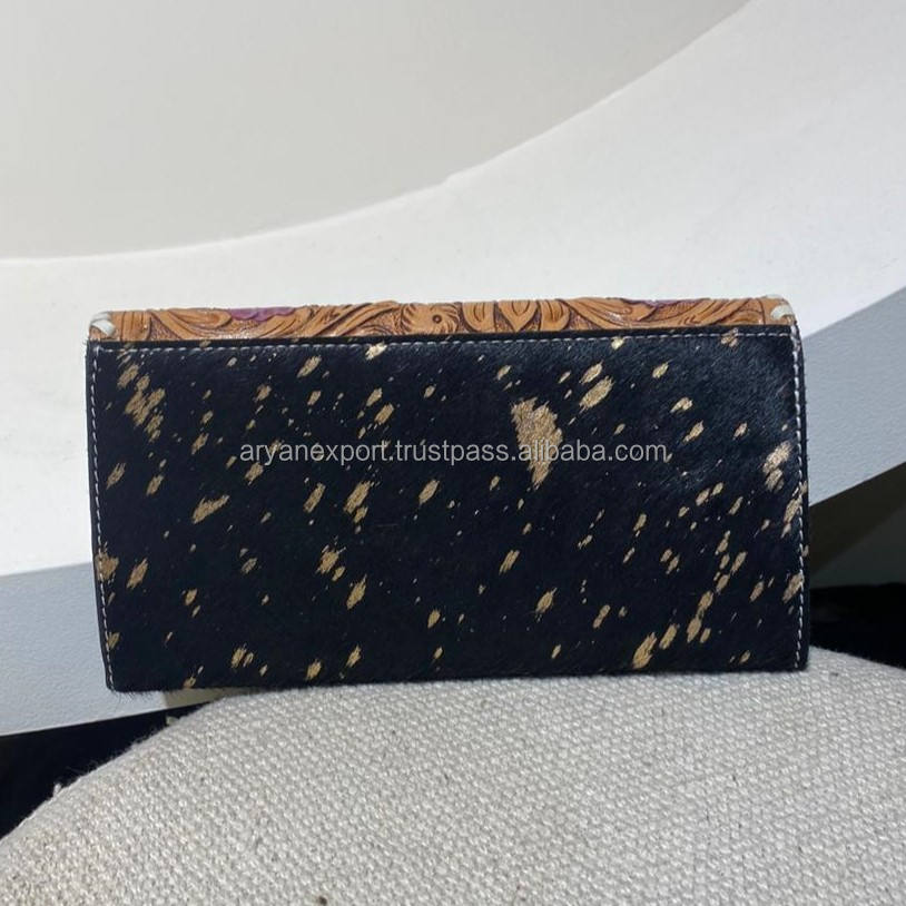 Western Hand Tooled Leather Wallet Hair on Metallic Genuine Leather Purse Premium High Quality Western Card Holder Luxury Wallet
