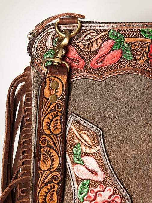Western Handbag Leather Brown Cross Body Bag Leather Sling Bag for Women Cowhide Crossbody Shoulder Bag Purse