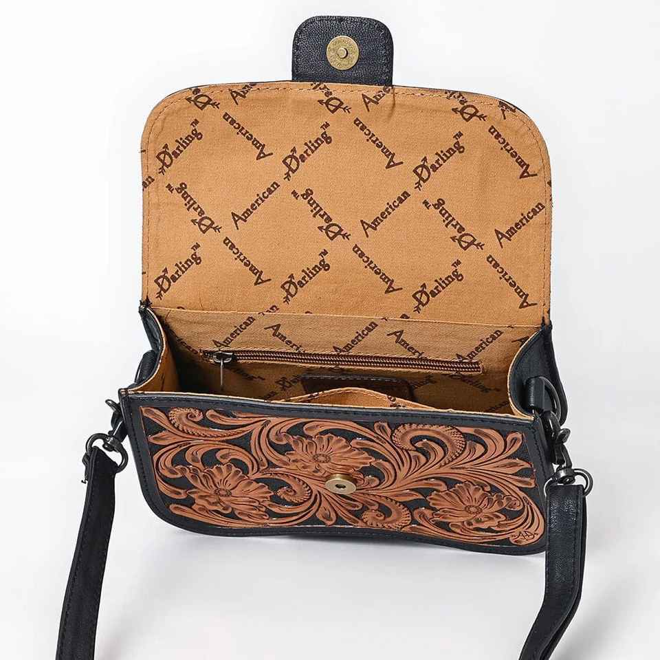 Western Handcrafted Genuine Leather Bohemian Sling Bag Tassel Zipper Custom Color Eco-Friendly High Quality Autumn Flowers