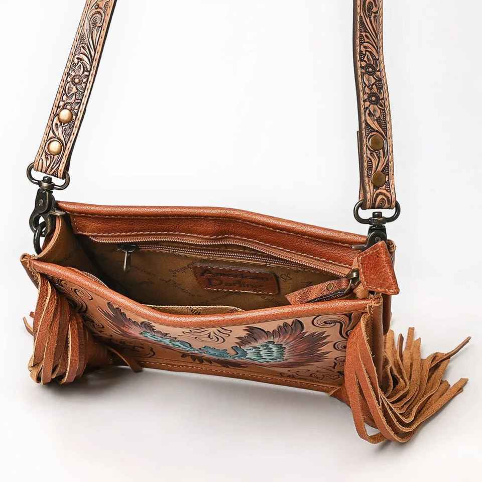 Western Handcrafted Tooling Fringe Bohemian Sling Bag Genuine Leather High Quality Women's Concealed Carry Autumn Customizable