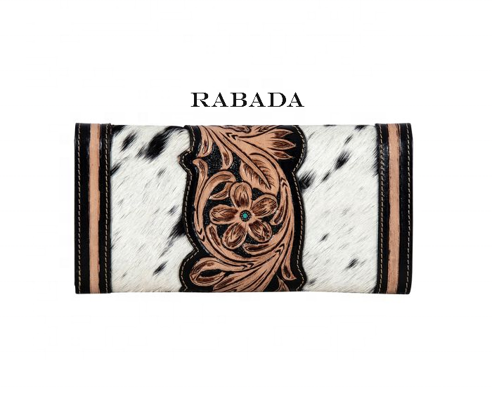 Western Handmade Cowhide Fur Leather Carving Women Wallet Stylish Phone Case Hot Selling Leather Clutch