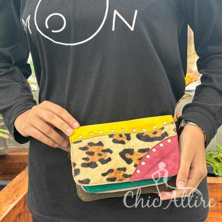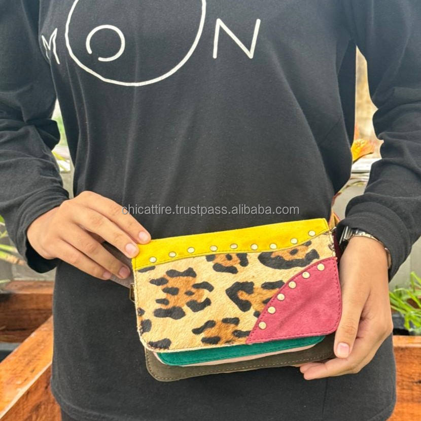 Western Handmade Real Animal Print Fur Genuine Leather Hip Pocket Bags Women's Vintage Stylish Festival Adjustable Fanny Packs