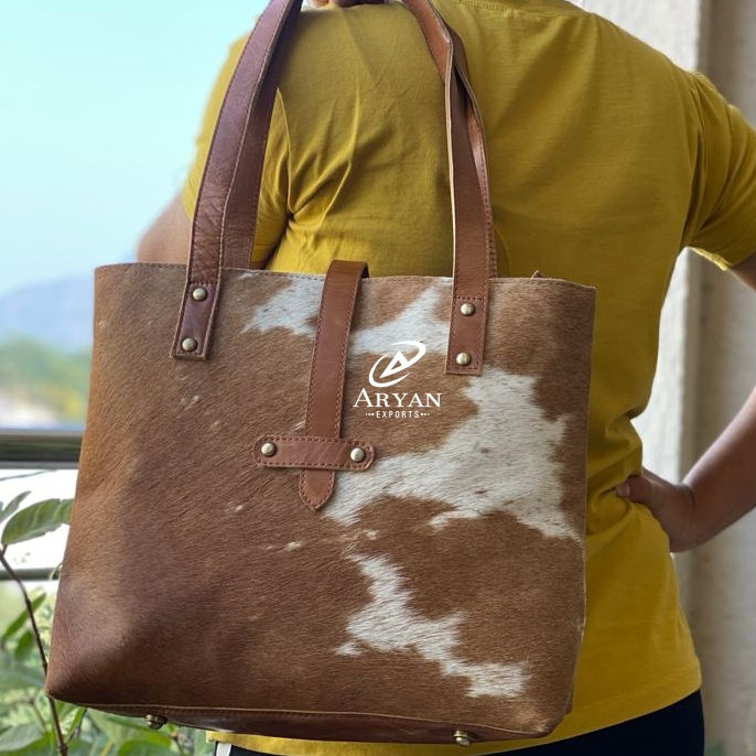 Western Handmade Real Hair On Cowhide Leather Large Tote Bag Vintage Cowgirl Stylish 100% Cowhide Leather Luxury Shopping Purses