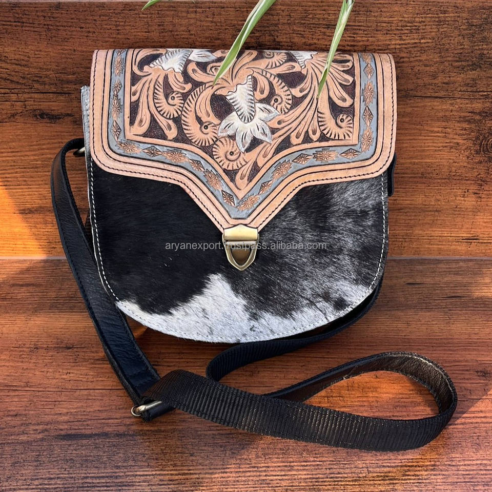 Western Handmade Tooled Leather Crossbody Purse Genuine Cowhide Leather Floral Women's High Quality Designer Unique Handbags
