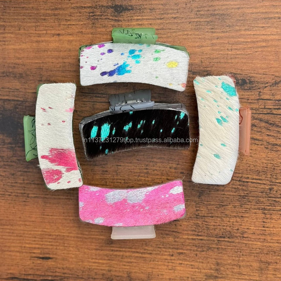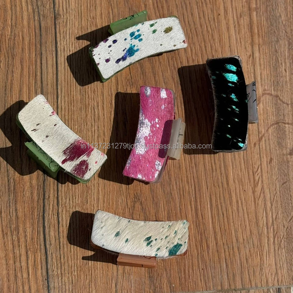 Western Hot Selling Style Real Handmade Metallic Fur Leather Claw Clip Cowgirl Hair Clip Leather Accessories for Women