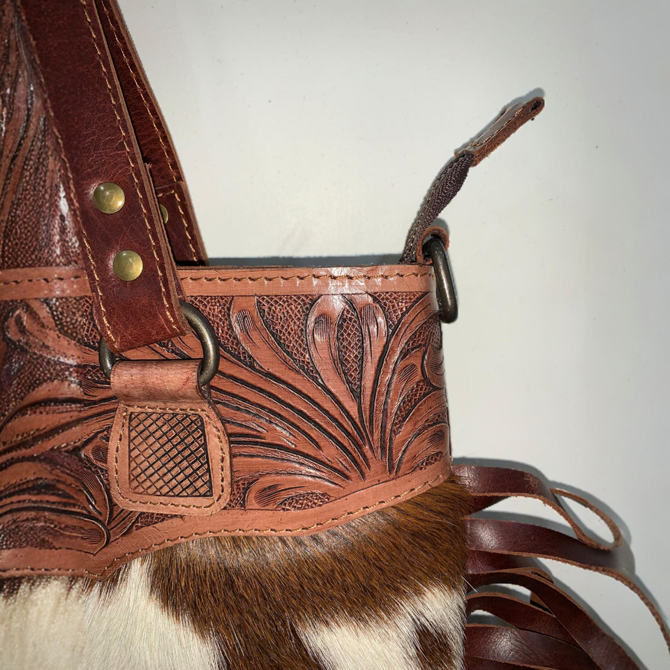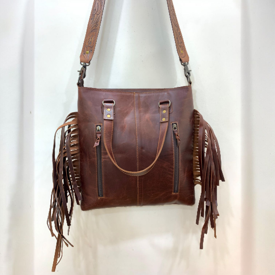Western Ladies' Genuine Cowhide Leather Crossbody Bag Large Capacity Zipper Portable Fashion Two Straps Multi-Use Handtooled