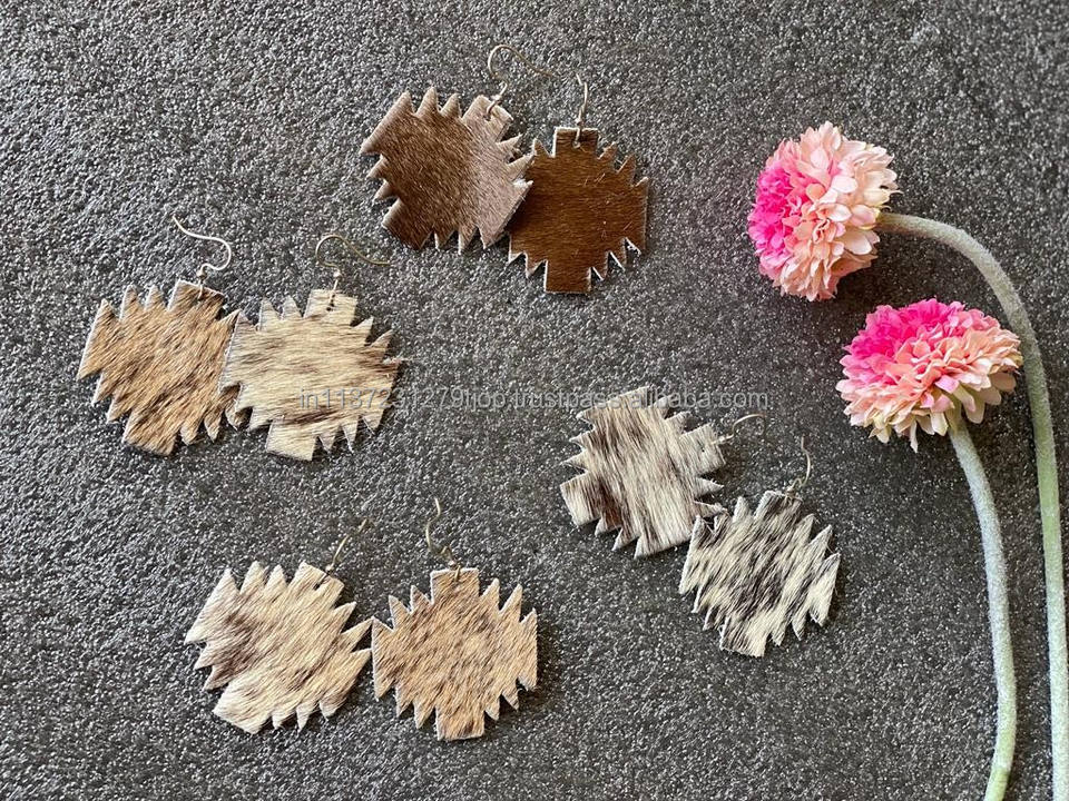 Western Look Handmade Cowhide Fur Leather Earrings Women and Girls Genuine Hair on Hide Cute Trendy Earrings