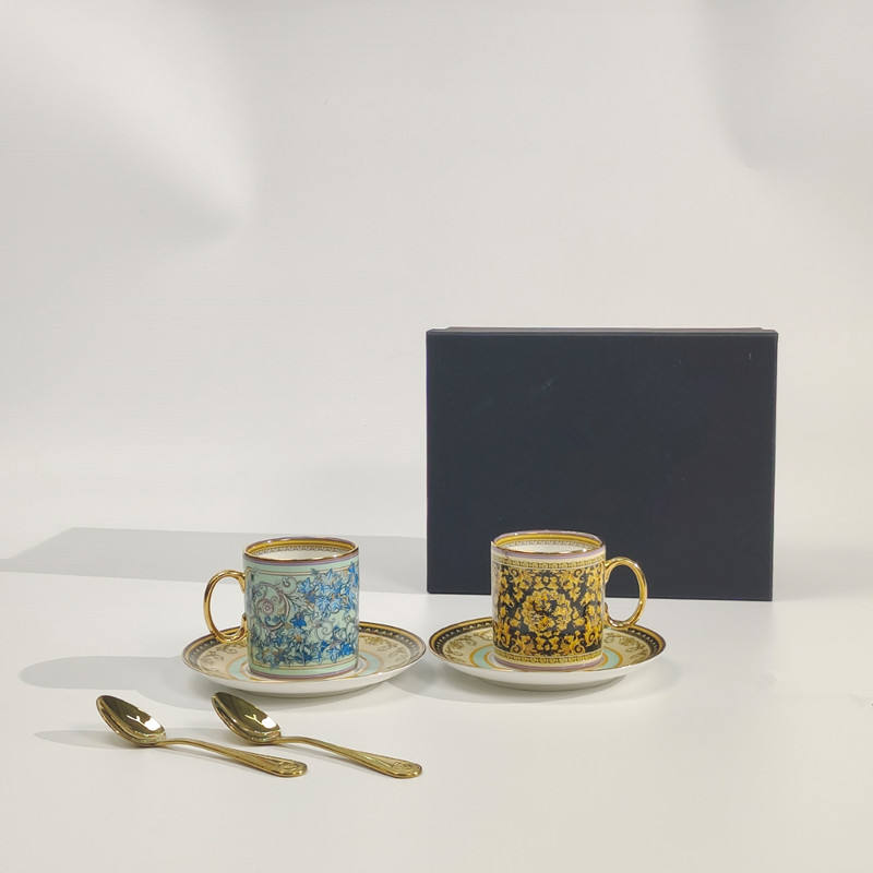 Western Luxury Ceramic Cup and Plate Set Travel Mug Modern Design Afternoon Tea Turkish Coffee Cup Set