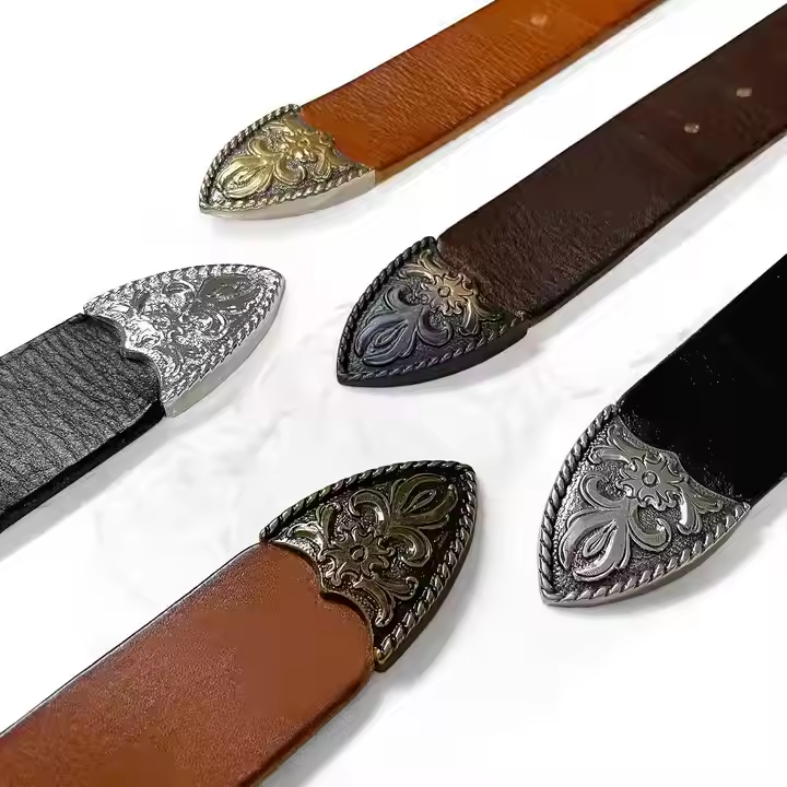 Western Men's Full Grain Leather Work Belt Auto-Lock Silver/Copper Cowboy Buckle Heavy-Duty Rugged Belt for Jeans & Casual Wear
