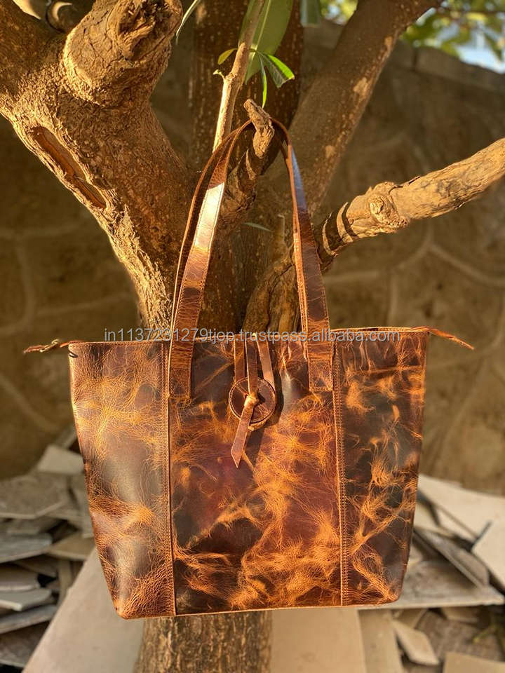 Western Pattern Crunch Leather Tote Handbag Stylish Shopping Purse Women Handbag Multi Purpose Handbag