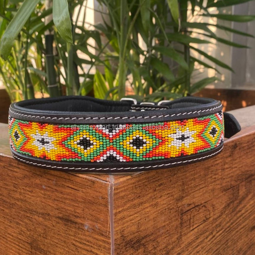Product Name:Hand Tooled Leather Beaded Dog Collar