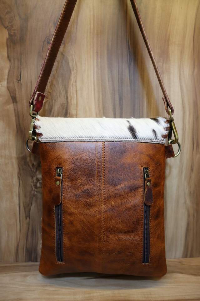 Women's Western Patterned Genuine Cowhide Fur Leather Handbag Handtooled Handbags for Ladies Wholesale Messenger Bags