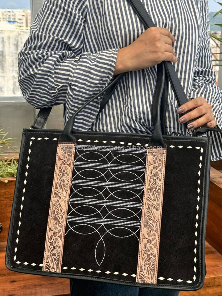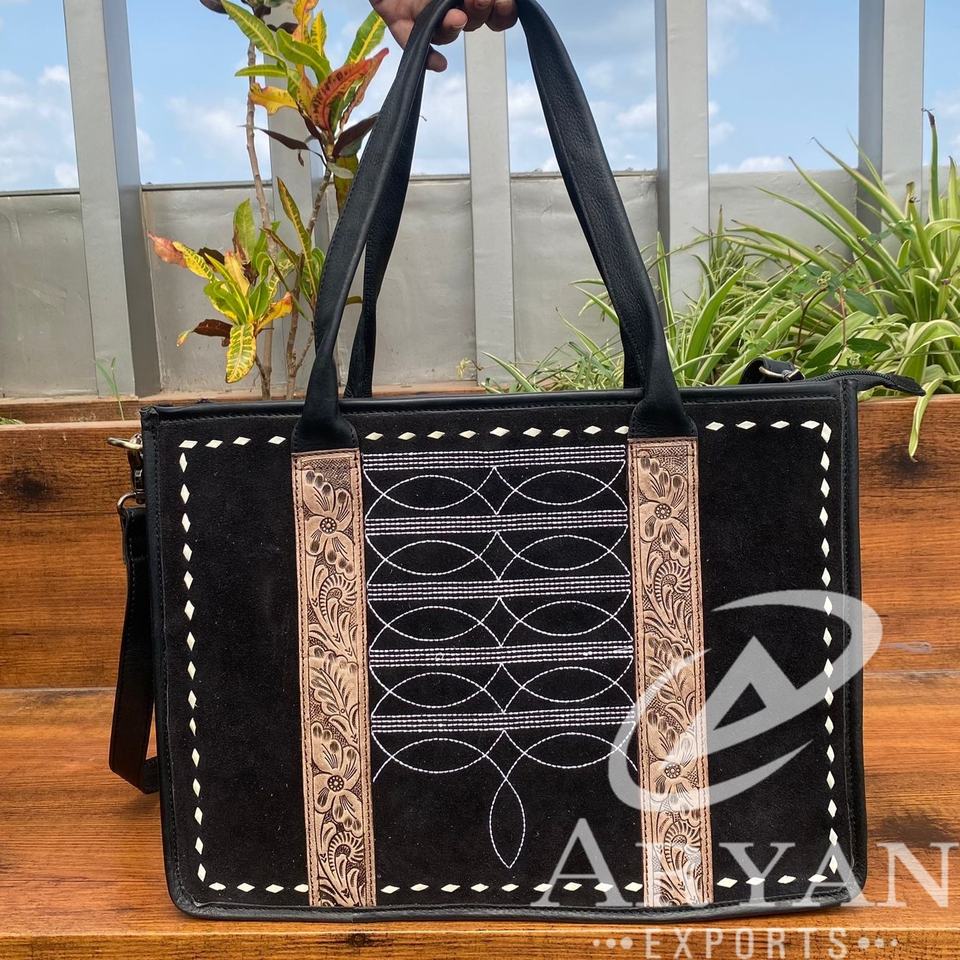 Product Name:Hand Tooled Suede Leather Tote Bag
