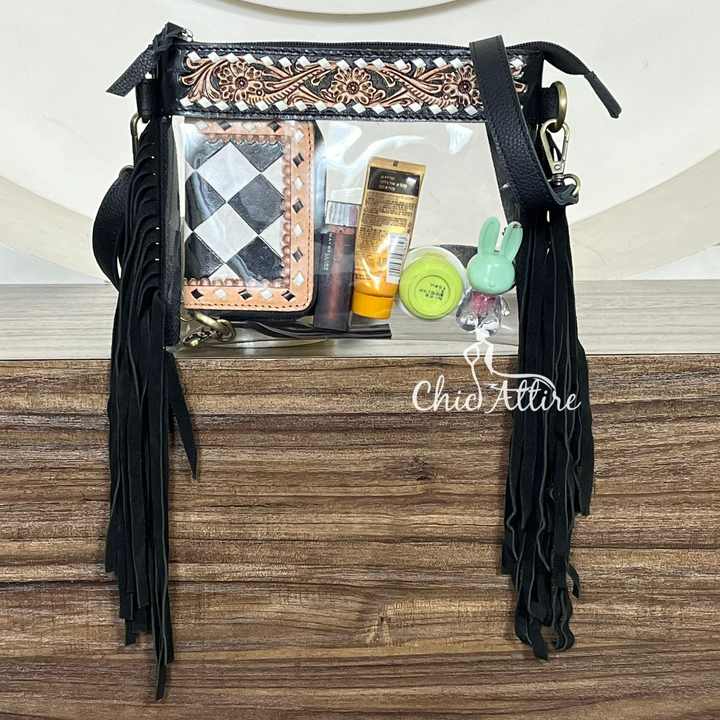 Product name:Handcrafted Clear Stadium Fringe Crossbody Bags