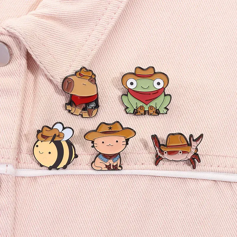 Western Style Cowboy Cartoon Enamel Brooch Lapel Pin Metal Badge Hat Boots Horn Horseshoe CowGirl Jewelry Custom Gift