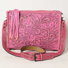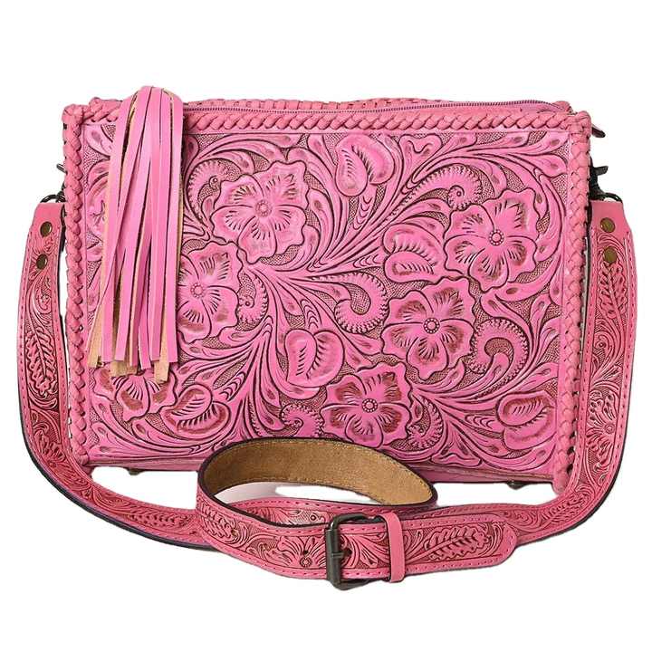 Western Style Cowhide Premium Quality Genuine Leather Floral Hand Carving Crossbody Bag With Adjustable Strap Custom Made Bag