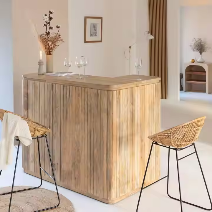 Western Style Design Mango Wooden Wine Cabinet and Bar Counter Unit Home Leather High Bar Counter for Sale