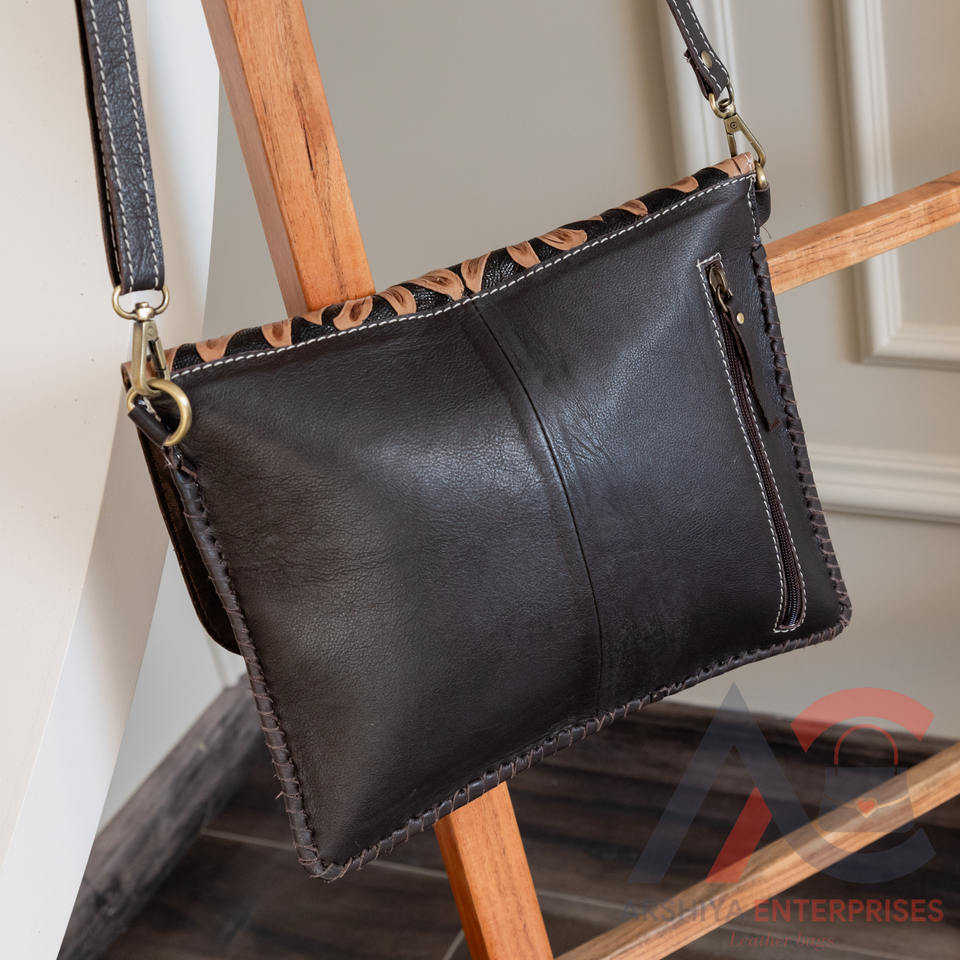 Type:Designer Tooled Fur Leather Turquoise Stone Crossbody Bag