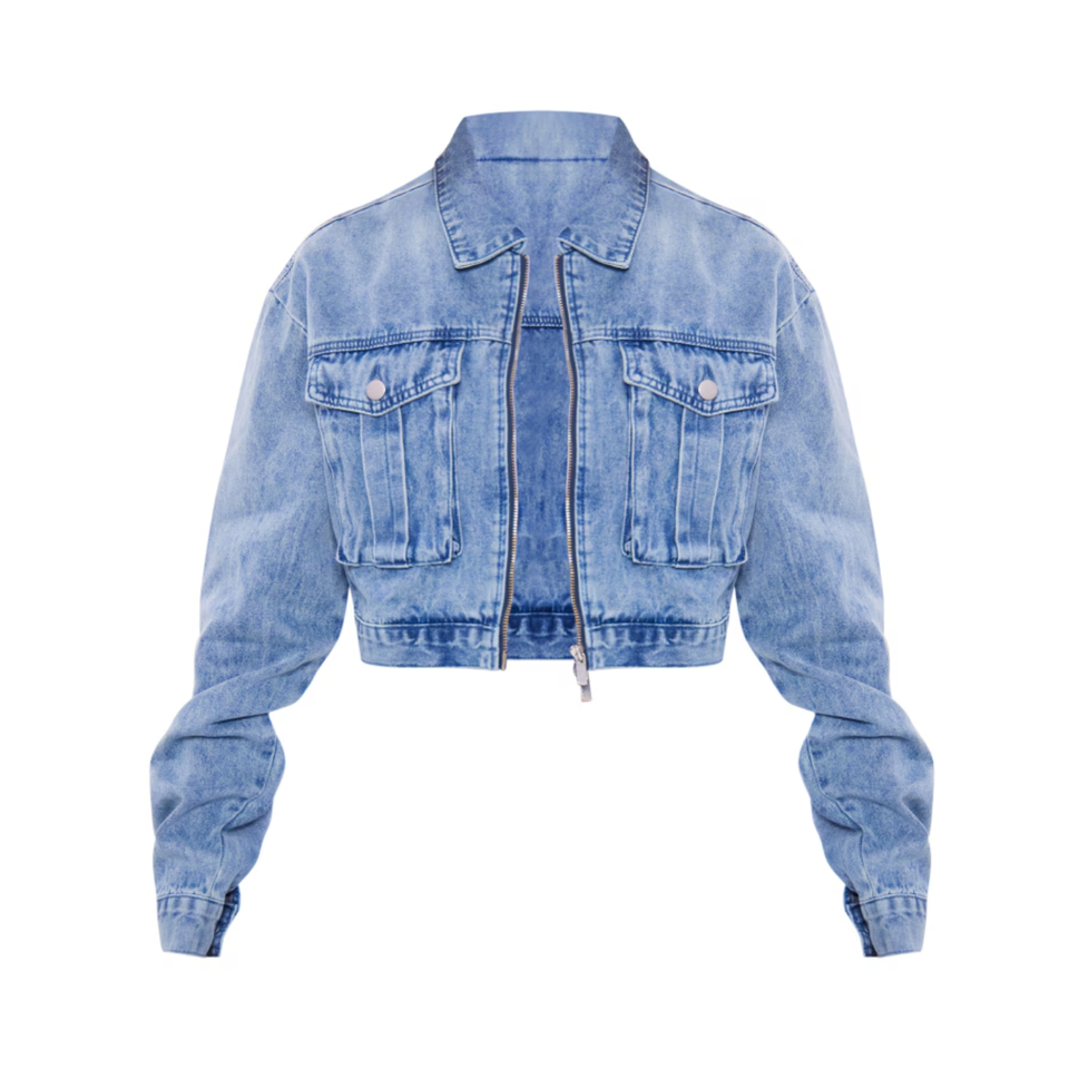 Western Style Jeans Jacket Women Vintage Mid Wash Hem Cropped Oversize Denim Factory Bomber Jacket Women's Jackets Bangladesh