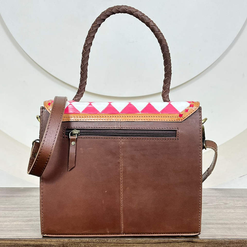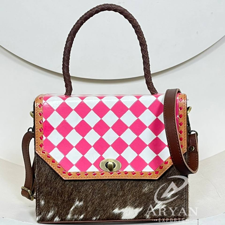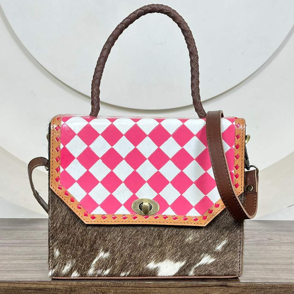 Product Name:Hand Tooled Checkered Leather Crossbody Bag