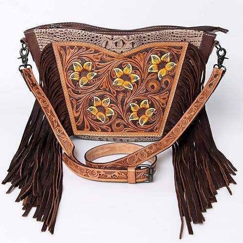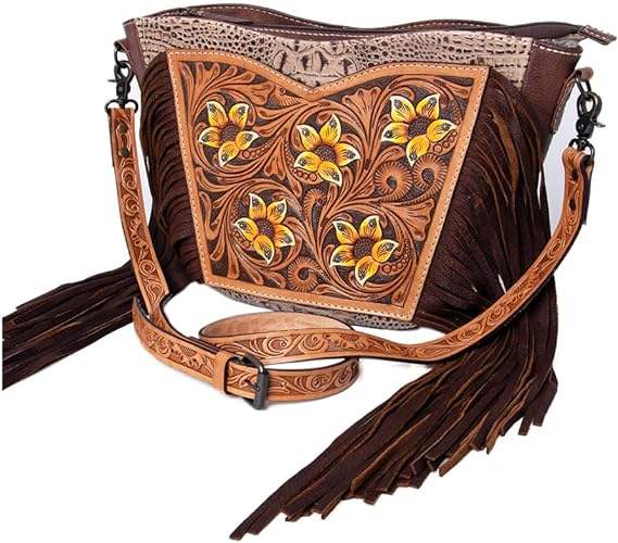 Western Style Real Cowhide Leather Bag Hand Tooled Carving Fringe Bags New Design Hot Selling Bags for Women