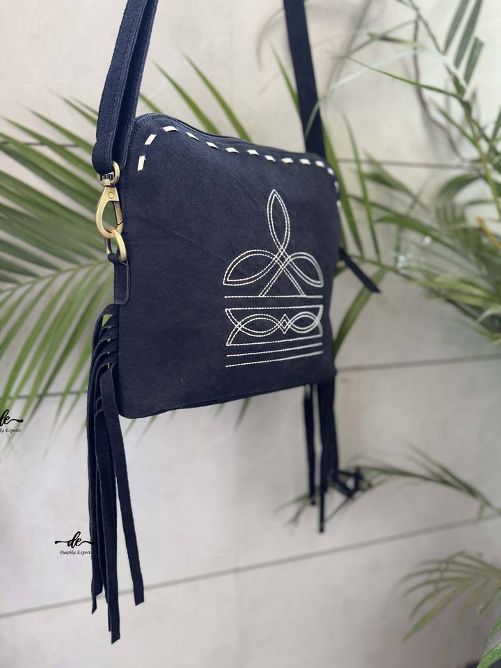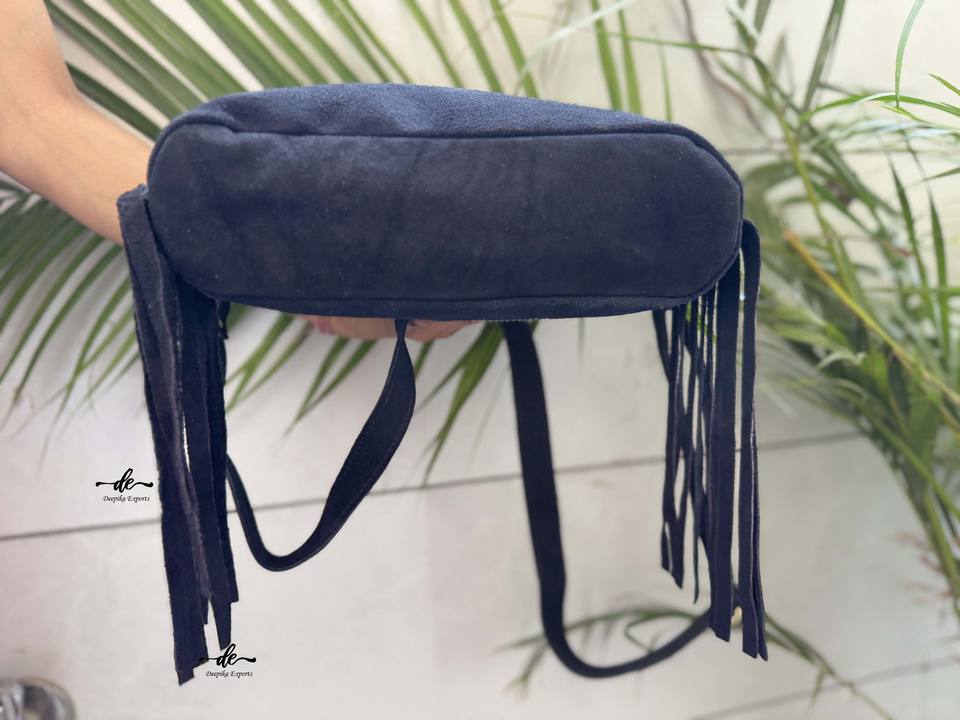 Western Style Suede Leather Boot Stich Fringe Bag Handbag Hot Sale Black color Bohemian New Designer Women Uses Handbag