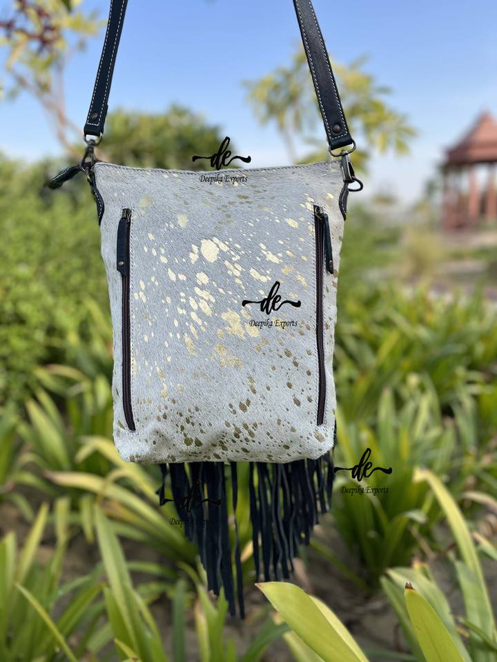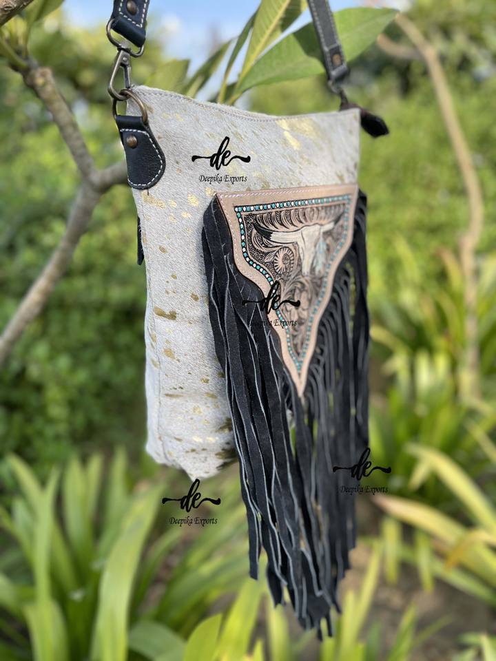 Western Style Women's Real Cowhide Leather Fur Fringe Handbag Stylish Hot Selling Purse Hair on Hide Bohemian Bags India