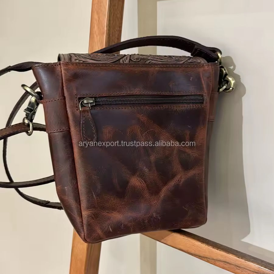 Product Name:Compact Tooled Hair On Leather Satchel Crossbody Bag